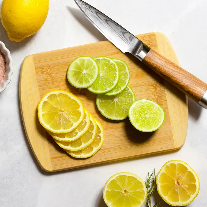 A customer favorite and a must-have for any kitchen or bar cart! This two-tone bamboo board is as functional as it is stylish — perfect for both everyday prep and effortless serving.