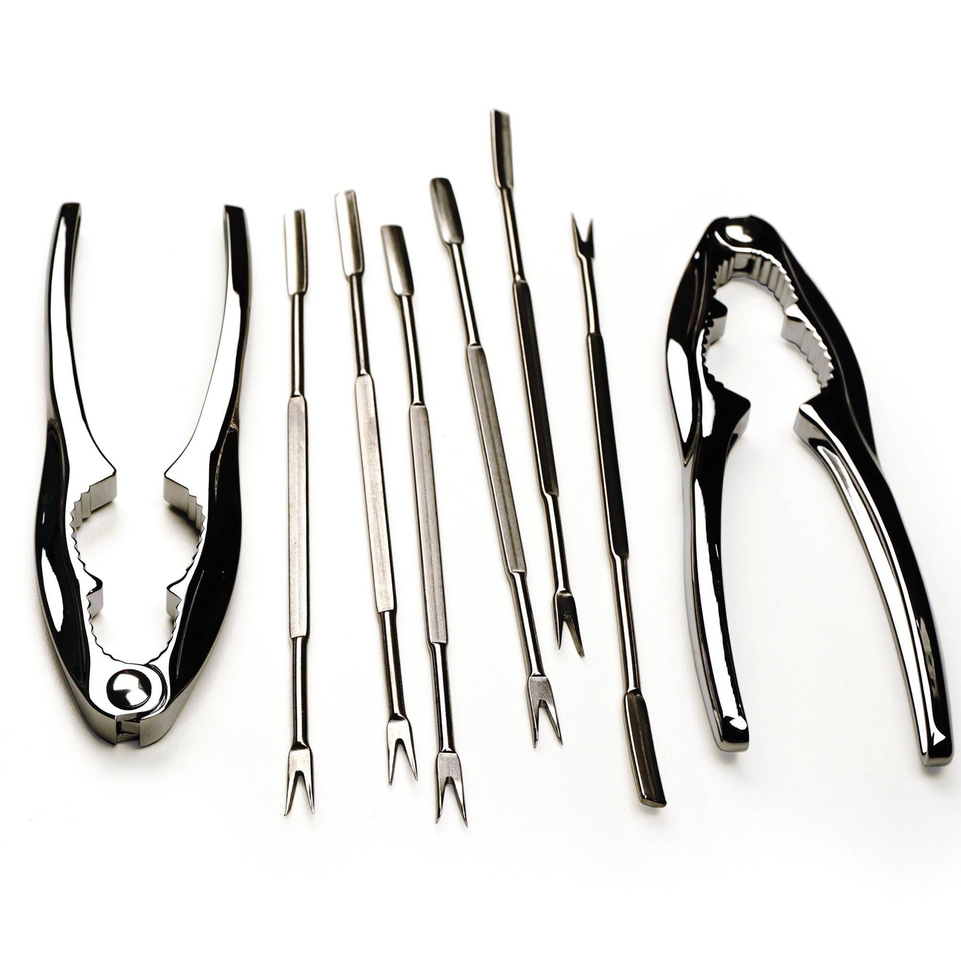 Rsvp strives to offer quality kitchen products and cooking tools at competitive prices. This seafood set is a perfect example. Crack your crustaceans open efficiently using this eight piece lobster and crab seafood set. This set includes two chrome plated shell crackers, and six 18/8 stainless steel picks. Durable and long lasting, The pieces are designed for ease of use and comfort. These elegant pieces will be a great addition to your next crab boil or romantic dinner for two. Picks measure 6-1/4-inches in length, crackers measure 6-inches in length. Dishwasher safe on top rack. When all the right people, and ingredients, kitchen tools, and food come together, we call this the art of gathering.